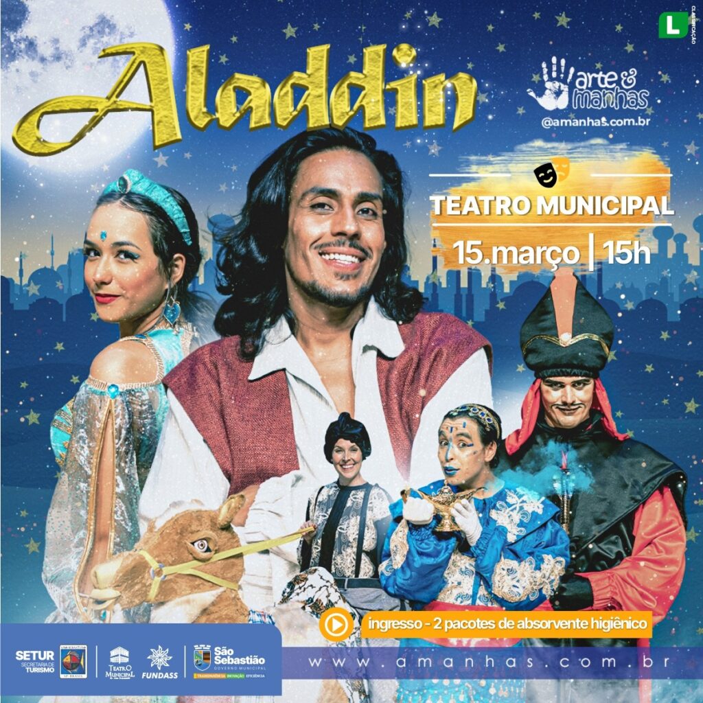 A Prefeitura de São Sebastião, por meio da Fundação Educacional e Cultural Deodato Sant’Anna, realiza, no dia 15 de março, às 15h, no Teatro Municipal de São Sebastião, a apresentação do novo espetáculo da Cia Arte & Manhas, inspirado na clássica história do menino que sonhava em se tornar príncipe e que tem sua vida transformada ao encontrar uma lâmpada mágica capaz de realizar desejos.